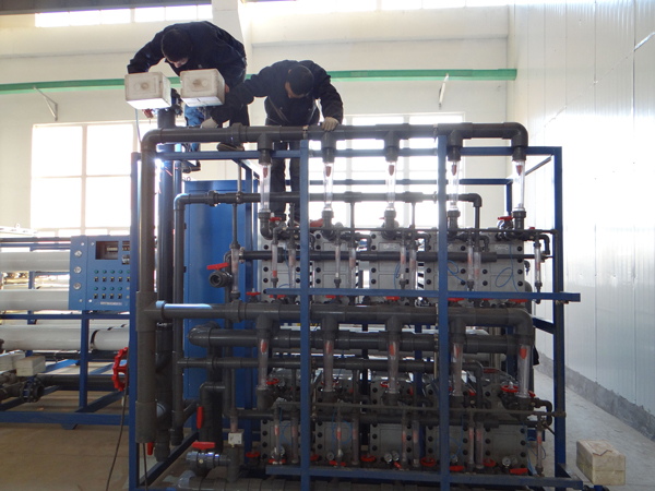 對(duì)比原水水質(zhì)情況,工藝推薦選擇工藝成熟、操作方便、運(yùn)行操作費(fèi)用低的雙級(jí)反滲透+EDI的水處理系統(tǒng)。在運(yùn)行過(guò)程中充分考慮到水的回用,二級(jí)反滲透濃水回到一級(jí)進(jìn)水,EDI濃水與極水一起回到二級(jí)反滲透作為進(jìn)水。